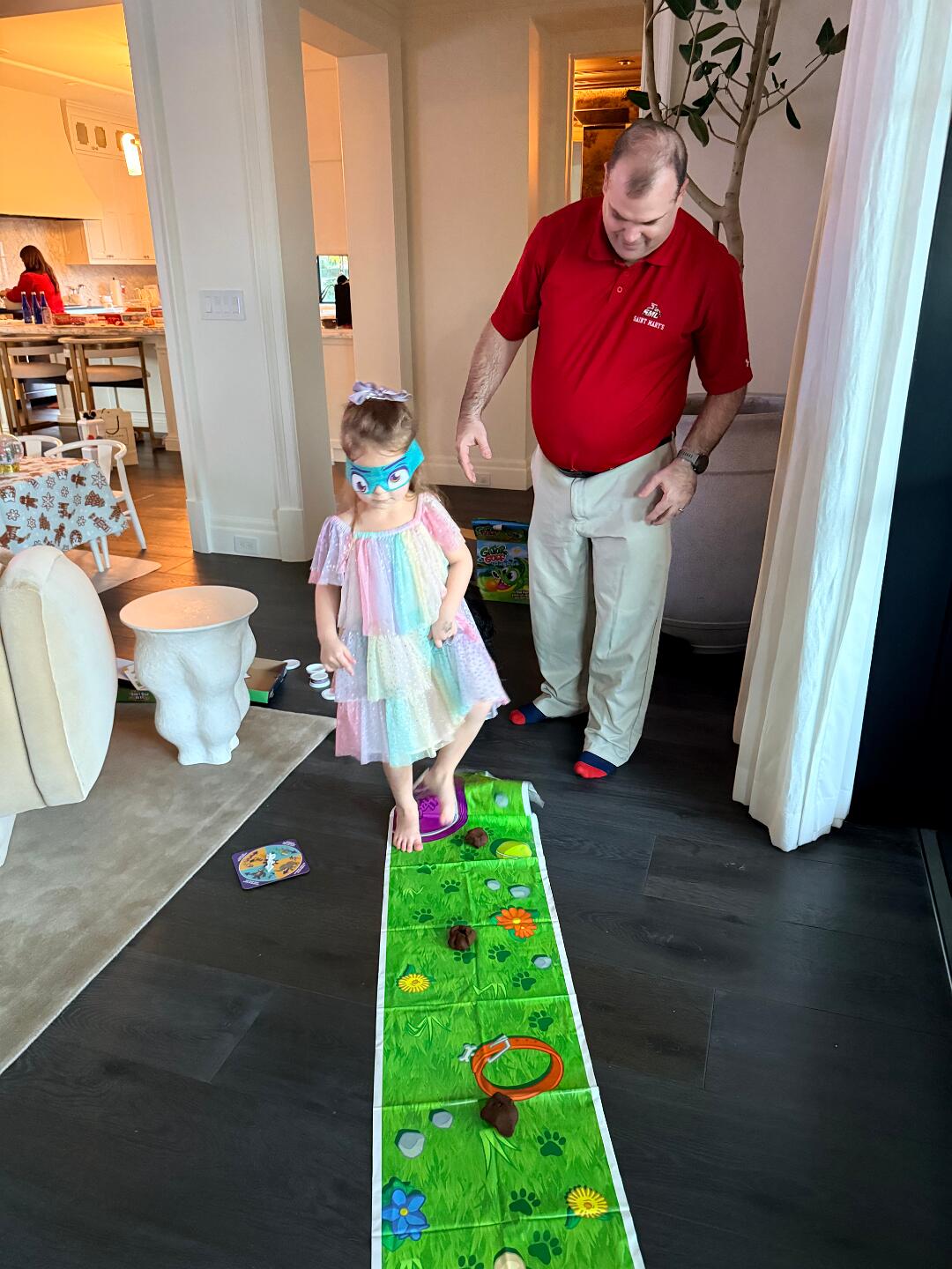 Vesper and Eric playing the Don't Step In It game.